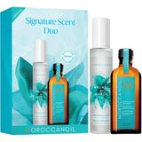 Signature Scent Duo, a set featuring two of MOROCCANOIL's all-time hair and body best sellers. Use together or alone to experience the Mediterranean-inspired blend of spicy amber and sweet floral notes.