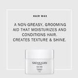 SachaJuan hair wax has a hold strength of 3 and is a grooming aid for great texture and non greasy shine. It moisturises and conditions the hair. Suitable for men and women and for all hair types. Perfect for hair that is thinner or longer hair.